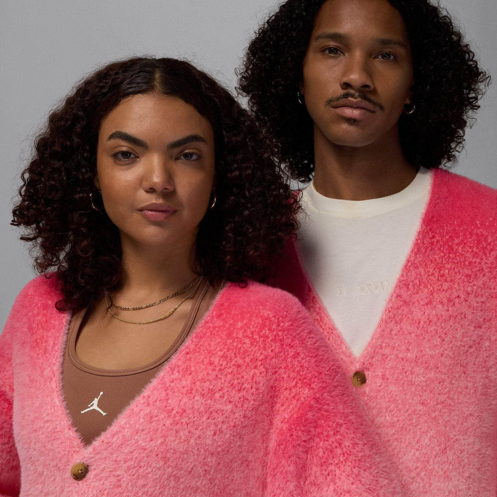 Elevate your casual game with Air Jordan. A soft and fuzzy knit fabric and a gradient colorway give this roomy cardigan a distinct look and feel. Consider it the new star of your wardrobe.